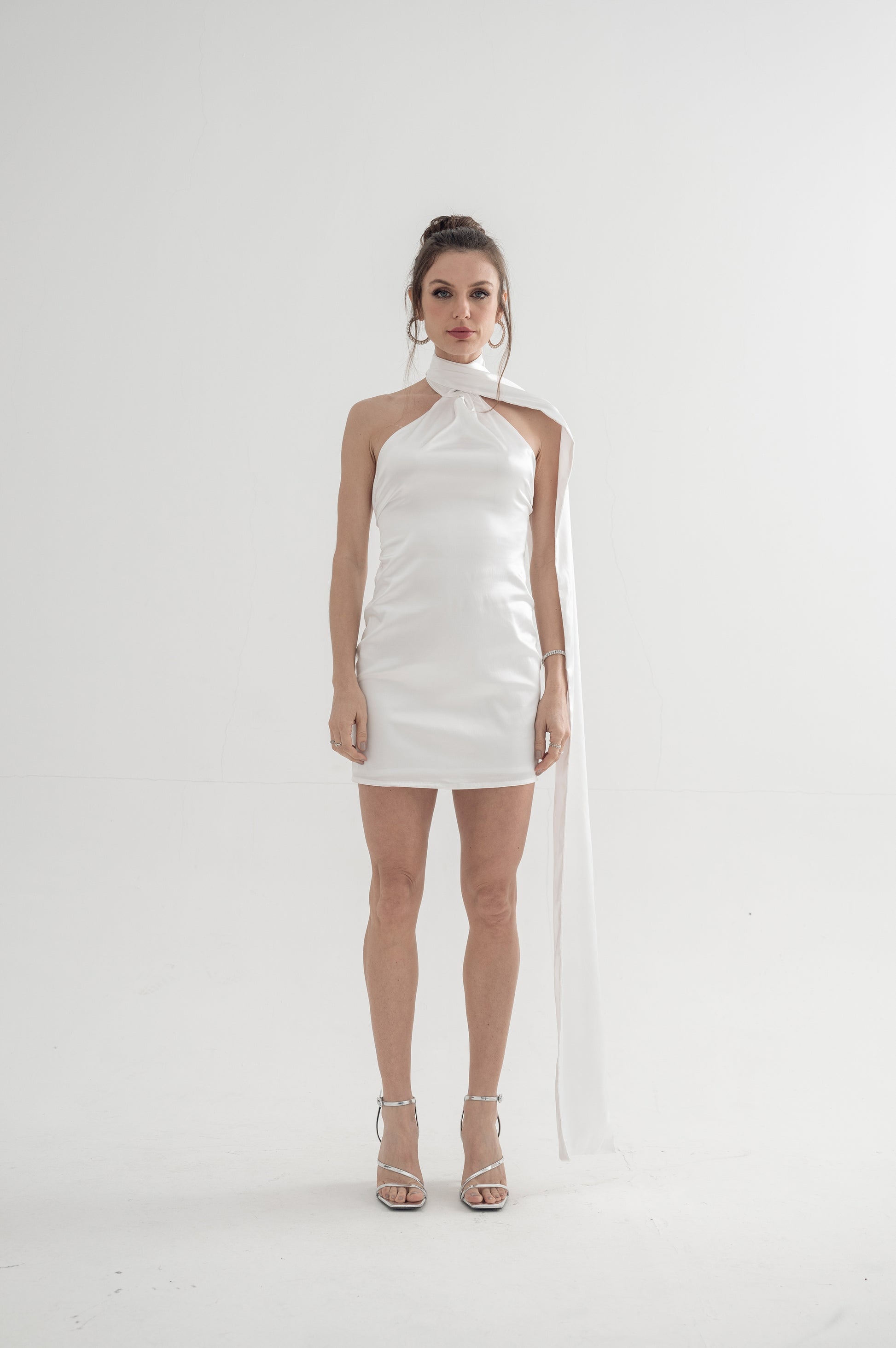 Vestido elaborado en Satin Lycrado con un drapeado delantero y una tira delgada