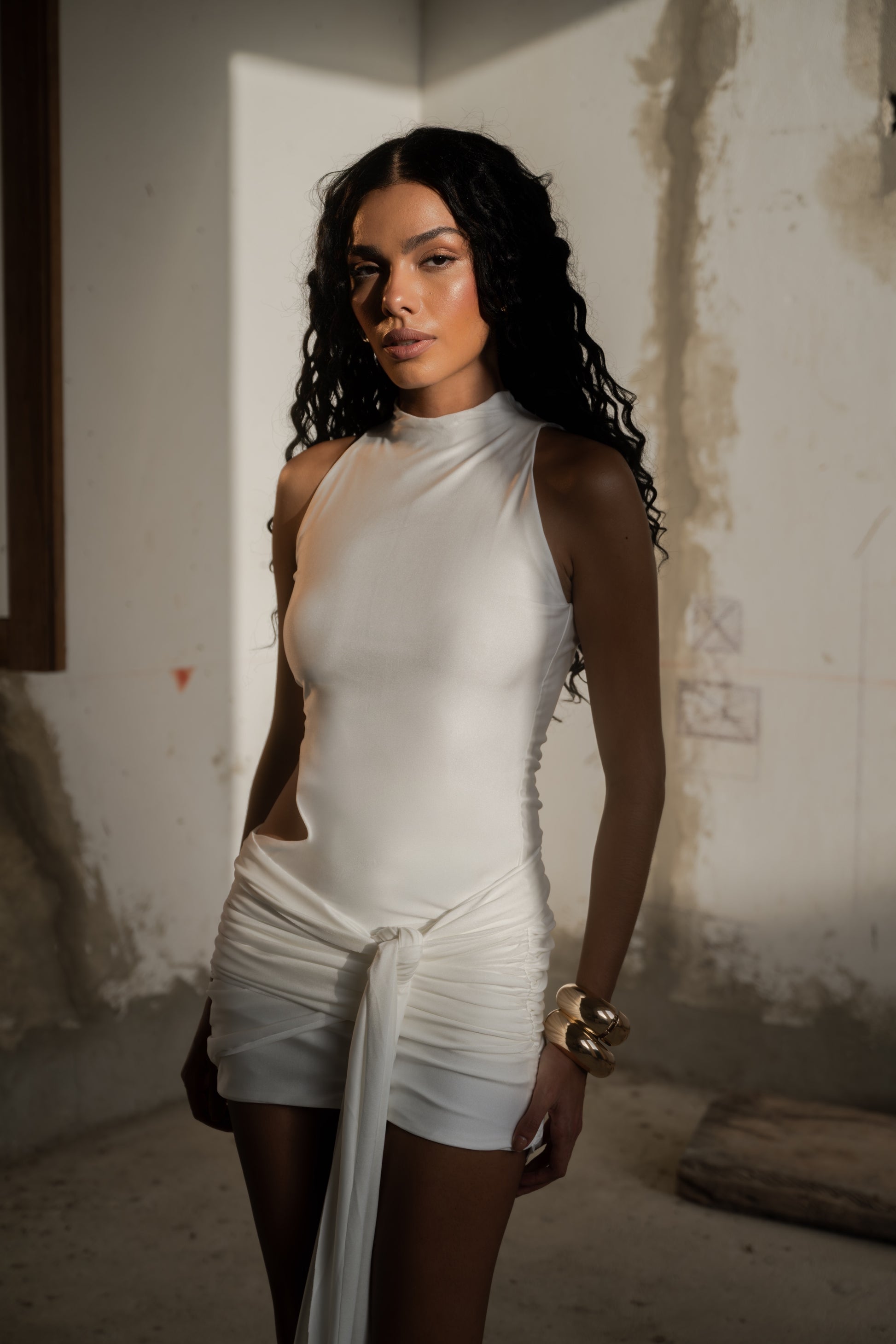 Vortex es la definición de versatilidad y confort en una silueta contemporánea. Su tela de alta elasticidad se ajusta perfectamente al cuerpo, ofreciendo comodidad y libertad de movimiento. El diseño destaca por su corte lateral asimétrico, que aporta sensualidad, y por el múltiple drapeado en la falda y el cinturón, que permite crear diferentes formas de uso según la ocasión. Minimalista pero con carácter, es una pieza pensada para transformar cualquier look en un statement.